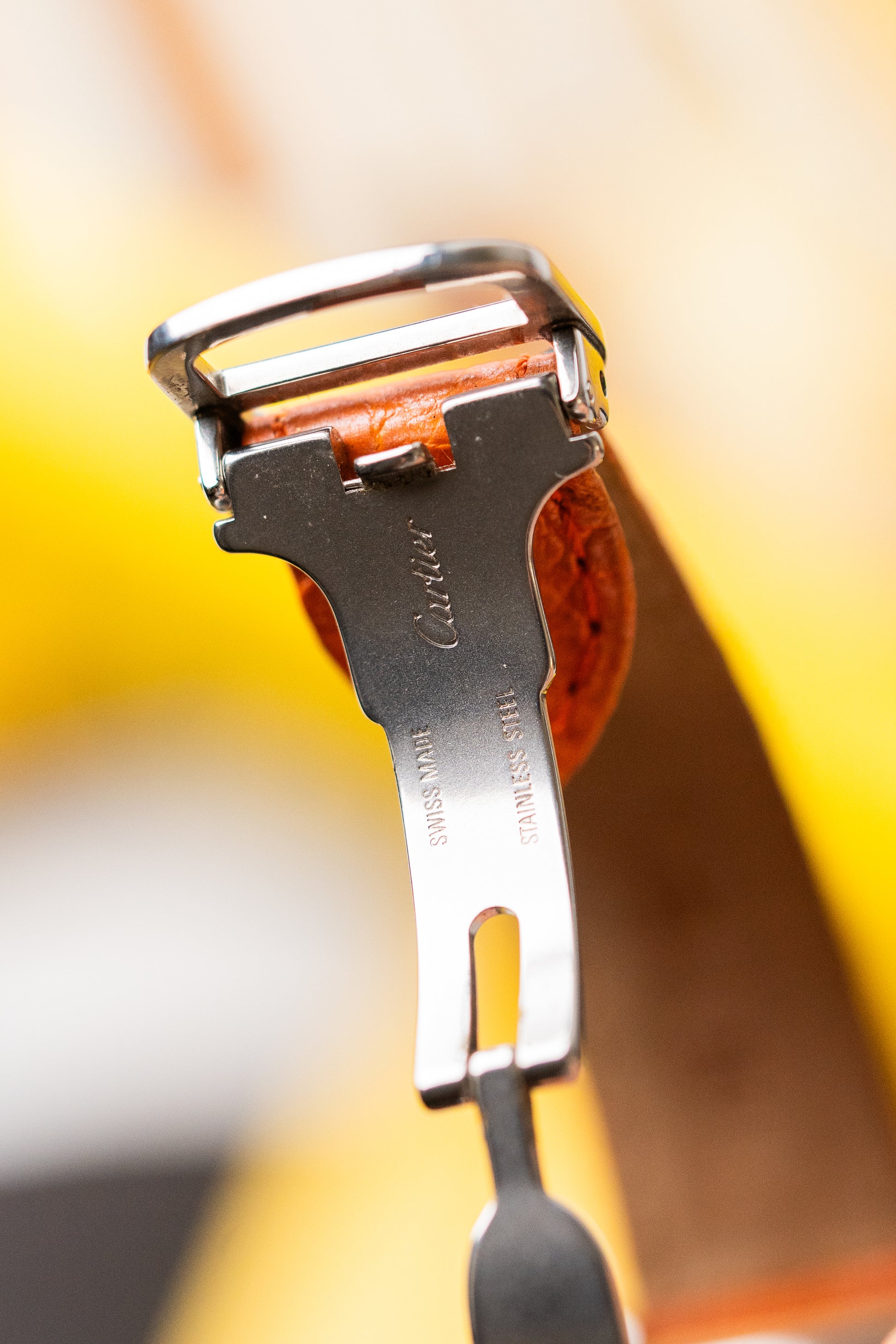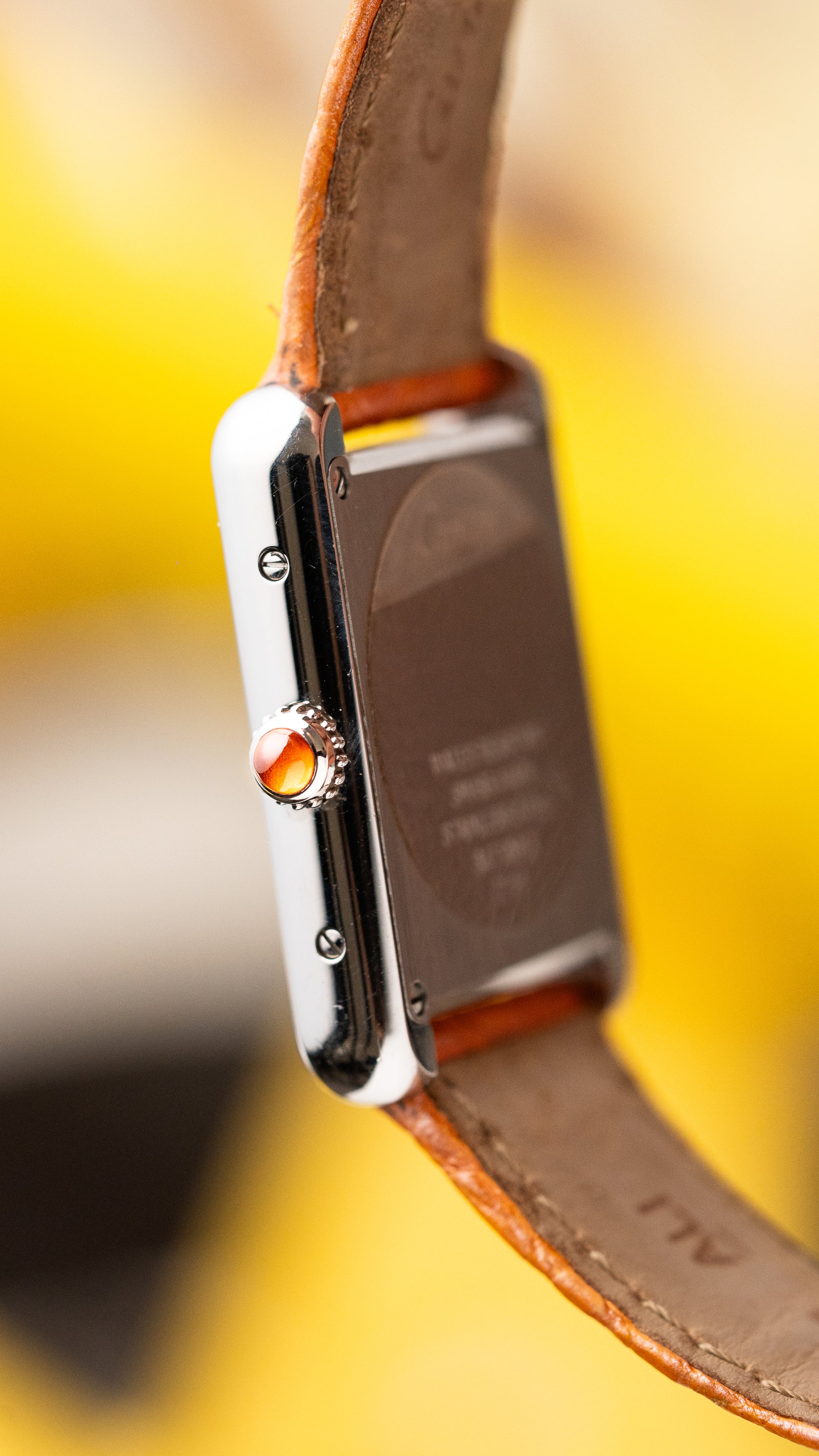 El Cartier Tank Solo es un modelo que representa la elegancia clásica de la Maison, reinterpretado en esta edición especial con carátula naranja y logo Cartier. Su icónica caja rectangular de acero con bisel de plata y sus proporciones equilibradas lo convierten en una pieza sofisticada y versátil, ideal para quienes buscan un diseño atemporal con un toque distintivo.